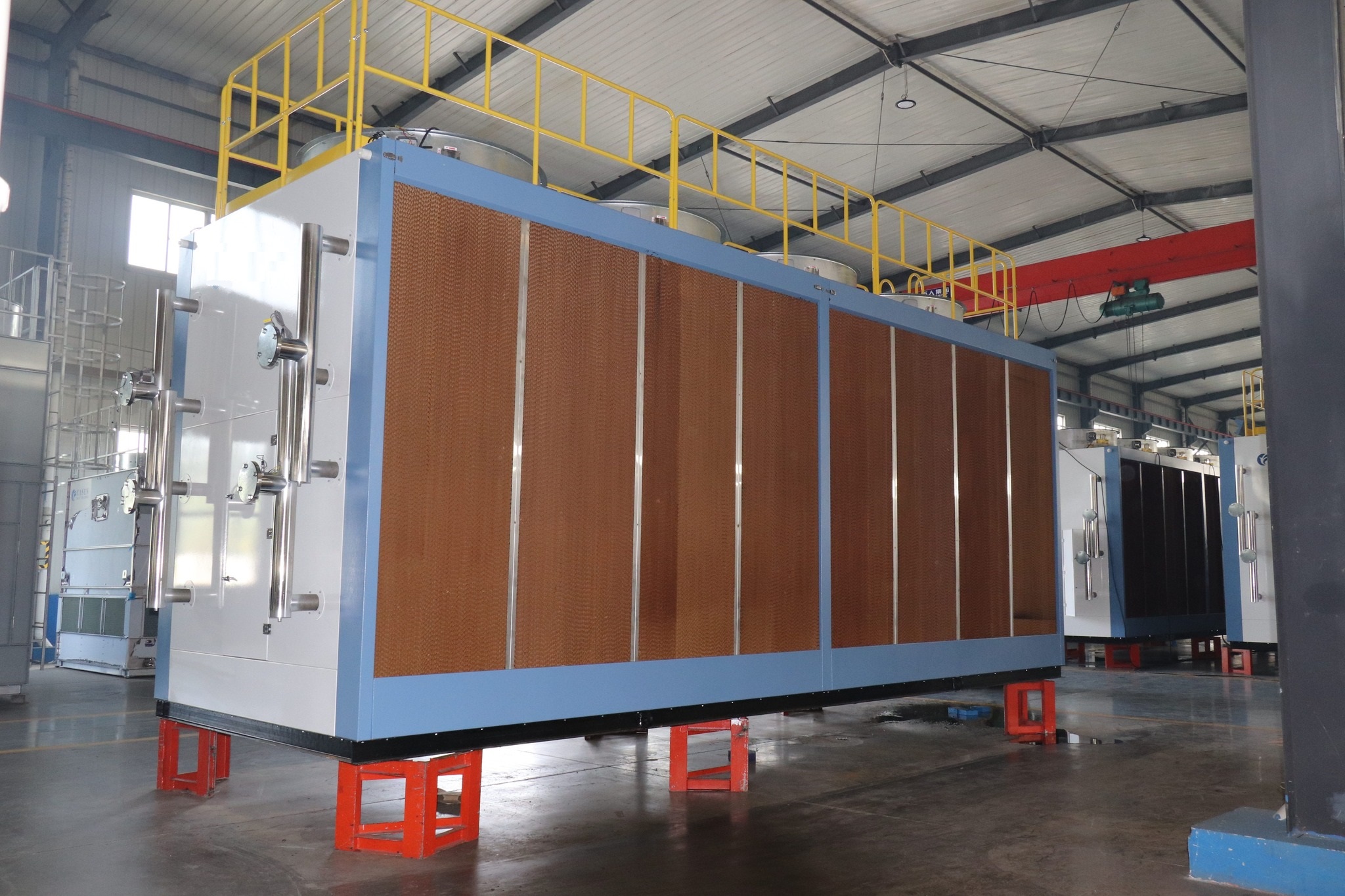 - Fans: Large, axial or centrifugal fans that create the airflow required for heat exchange. They draw or push air through the wet pads, across the coils, and out the top of the unit.